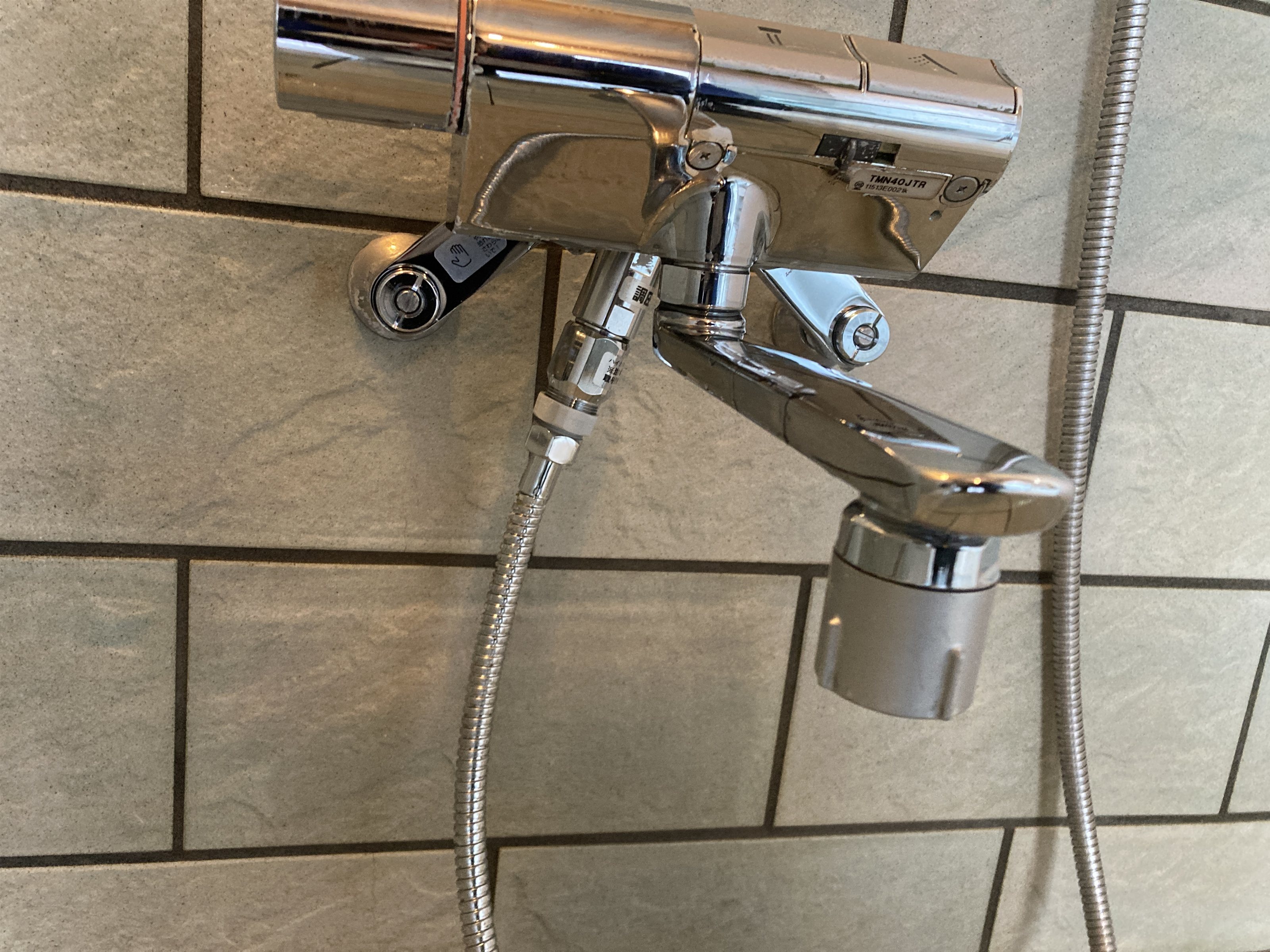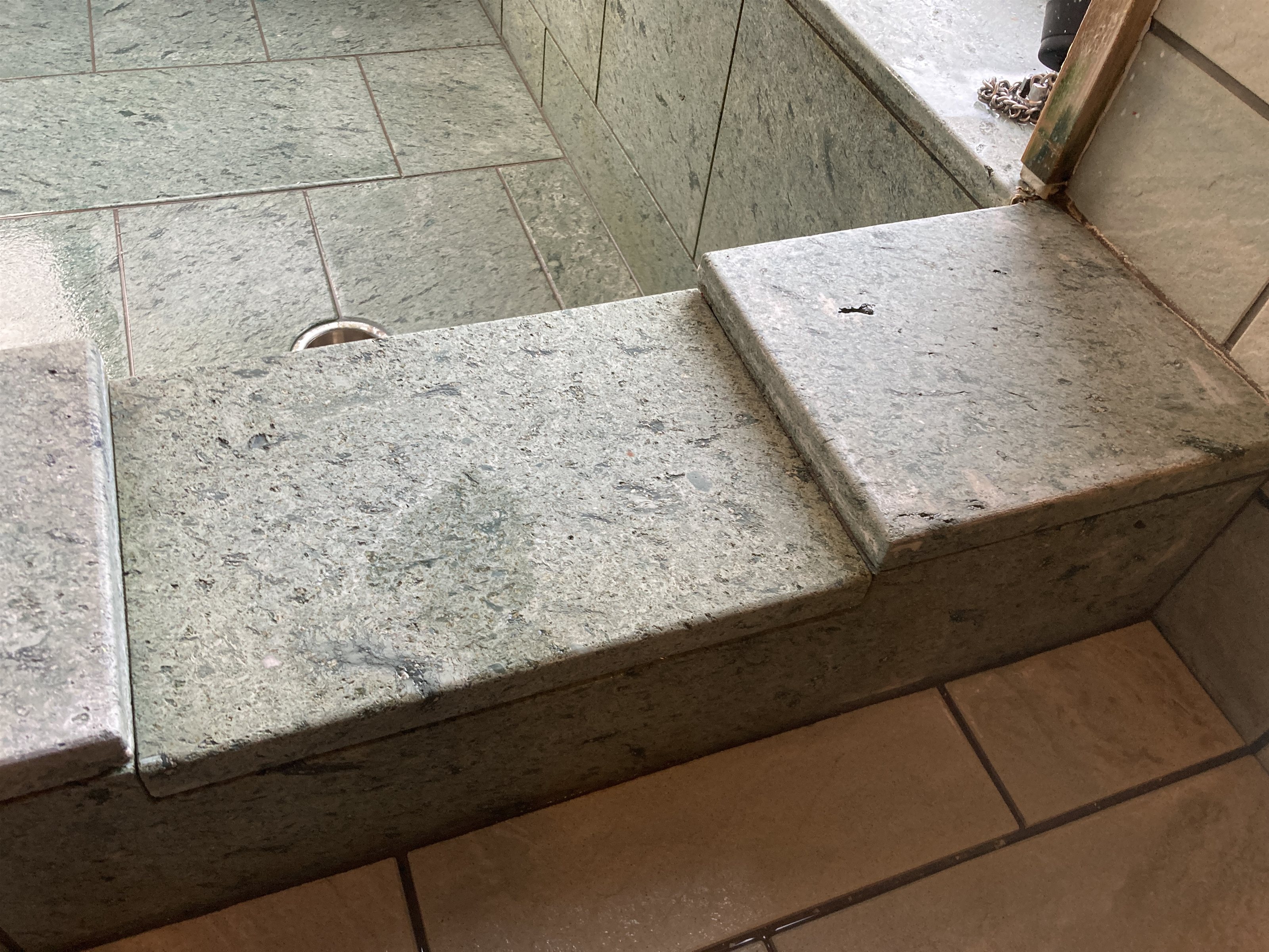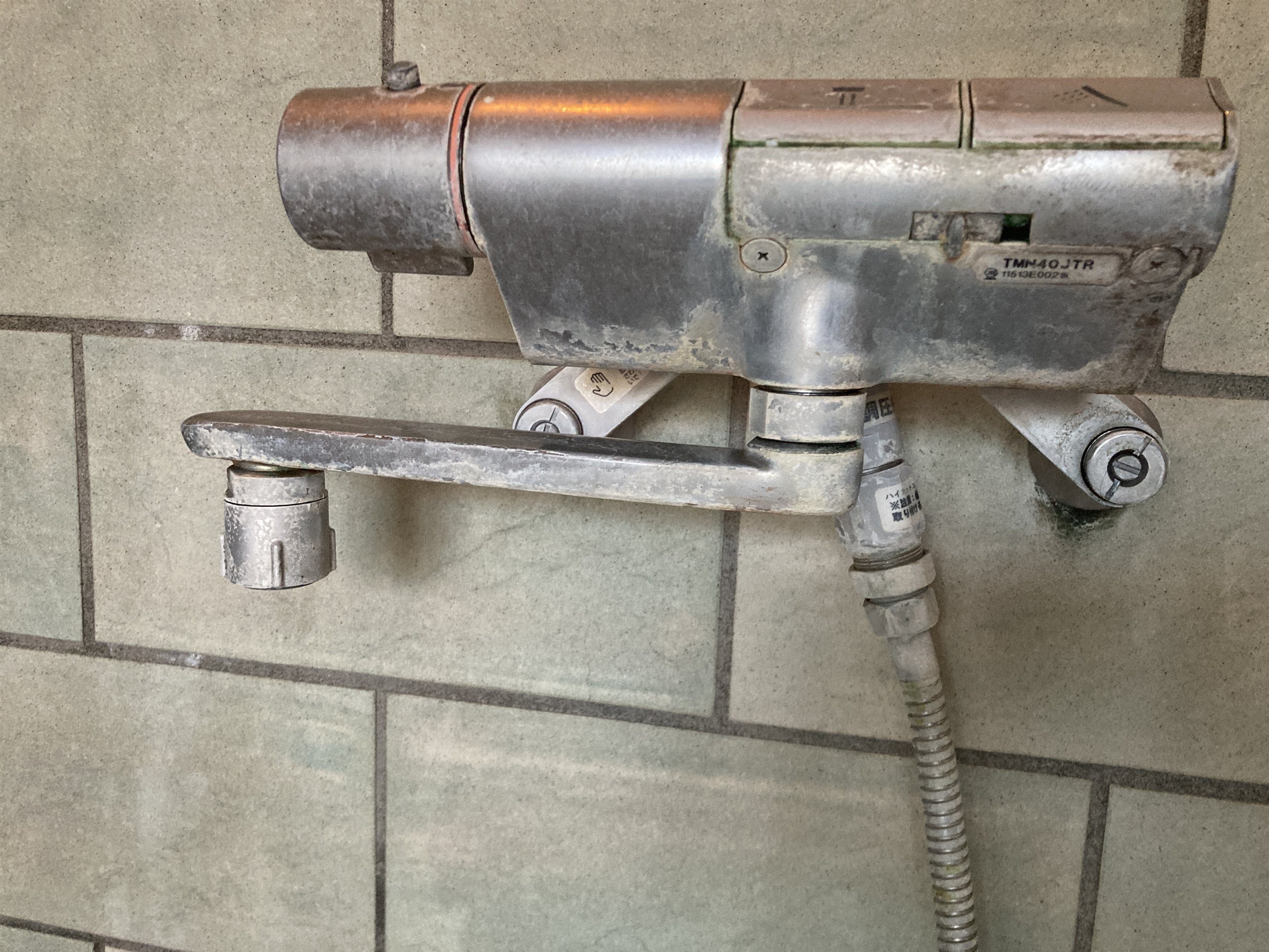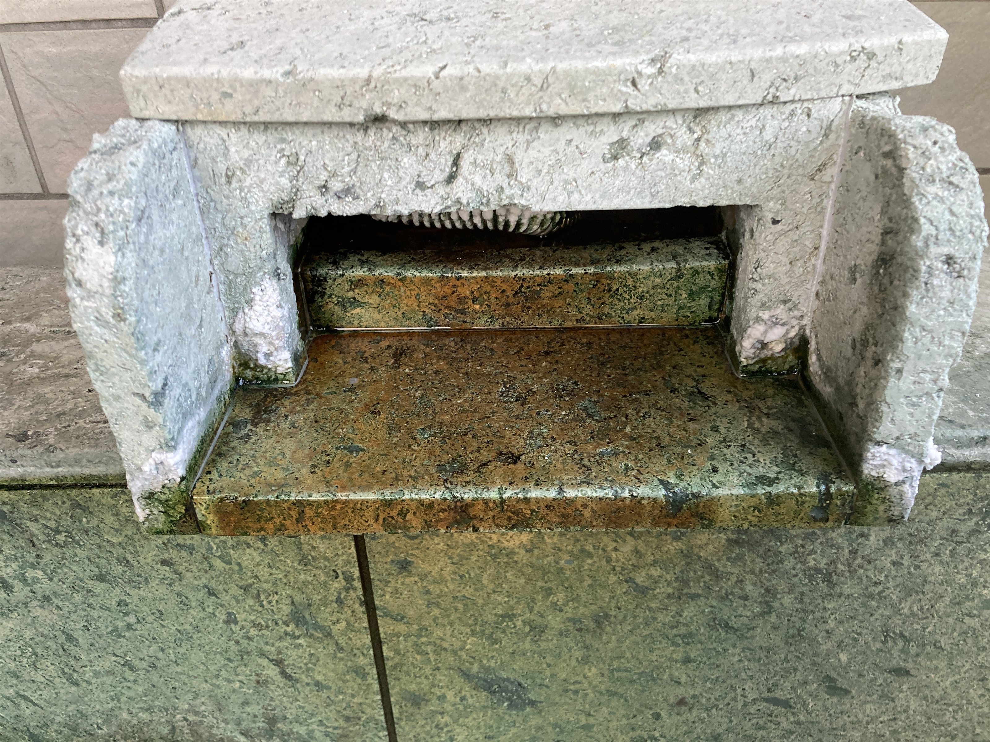 温泉の酸化鉄、温泉あくがついて赤茶色のさびのような汚れが付く。