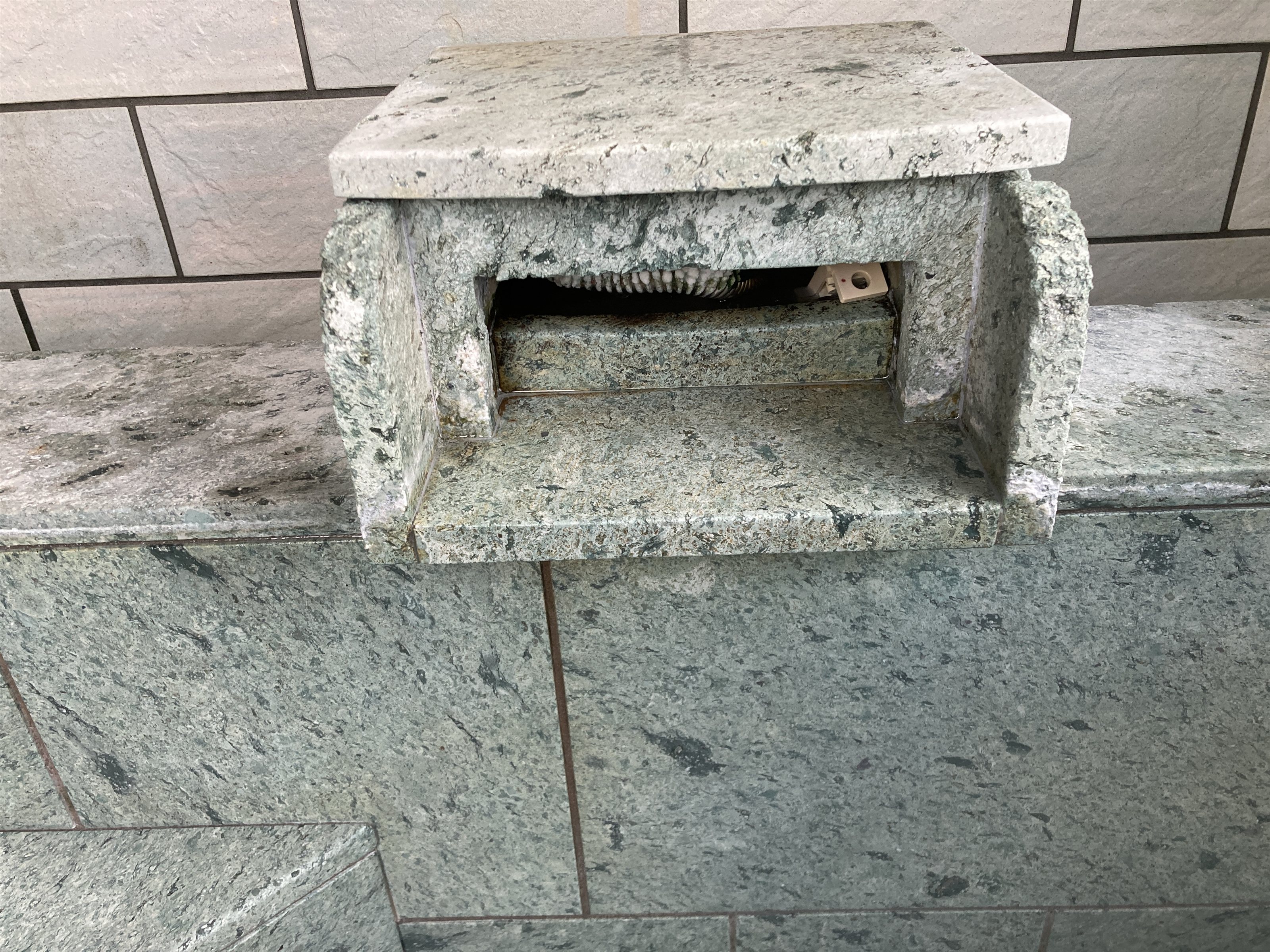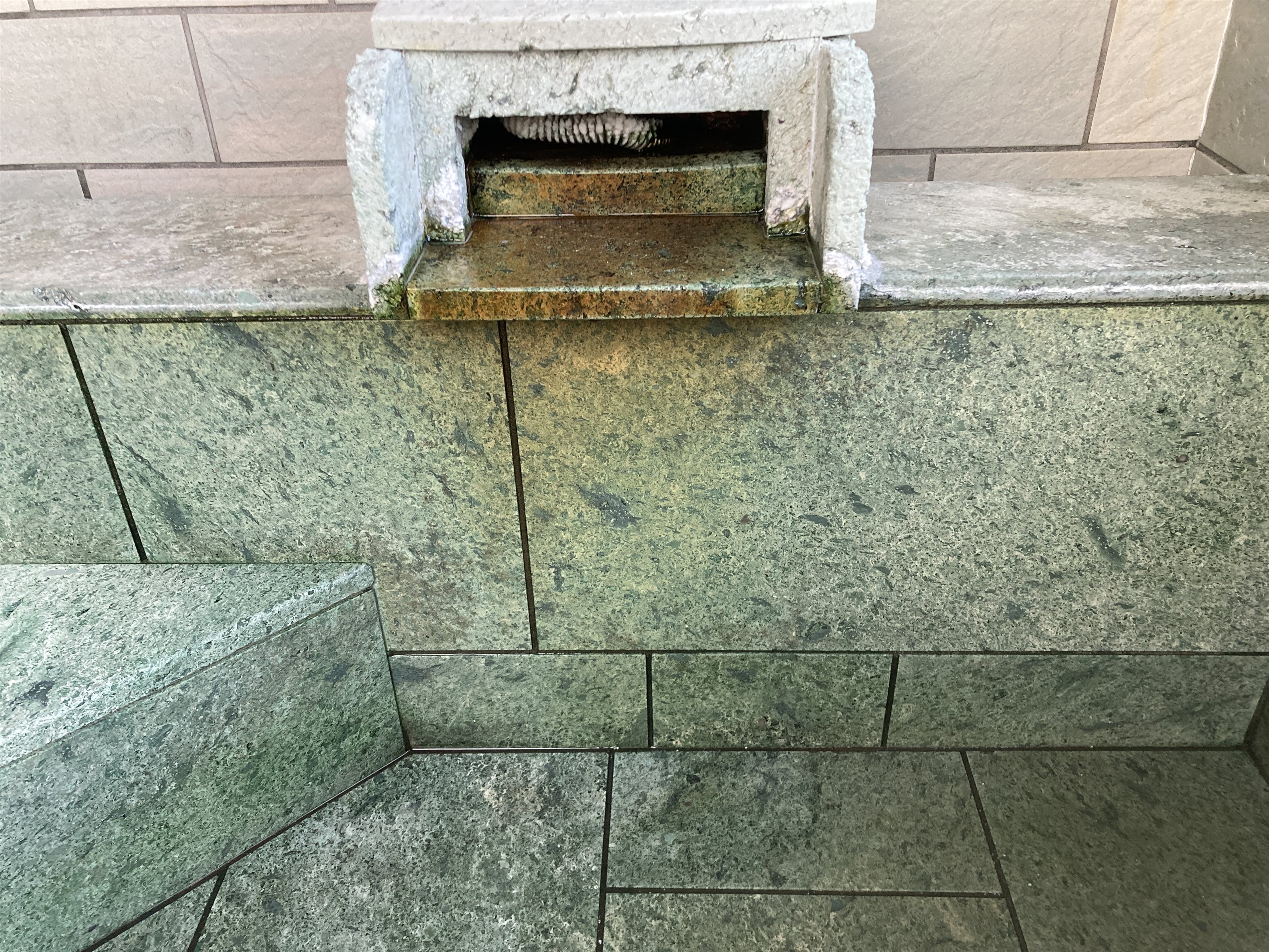 伊豆石は、キレイな青緑色ですが使っているうちにやはり取れない汚れが付きます。